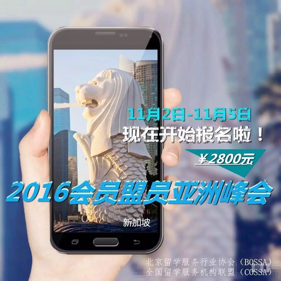 在如今这个出国留学热的时代,为了更好的搭建留学服务平台,增进行业交流,意腾留学代表北京留学服务行业协会(BOSSA)、全国留学服务机构联盟(COSSA)邀您参加将于2016年11月2日(三)-11月5日(六)在东南亚美丽的新加坡举办的“2016会员盟员国际教育行业亚洲峰会”。详细内容请参考下方新加坡峰会简介。